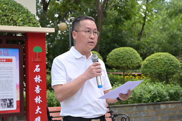 下午的活動聚焦“廉潔自律”與“發展賦能”兩大核心,推動黨性教育走深走實。隊伍首先前往石林縣武廟內的“雙碑”廉潔文化園。在《去思碑》與《遺臭碑》前,講解員詳細介紹了兩碑的歷史背景:《去思碑》記錄清末路南知州陳先溶勤政愛民的功績,是百姓愛戴的見證;《遺臭碑》則揭露1943年貪官許良安的劣跡,成為警示后人的“反面教材”。